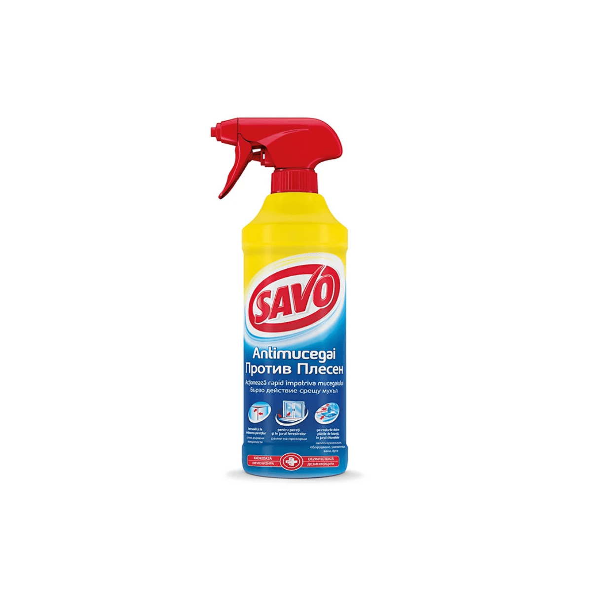Savo Antimucegai se aplică nediluat pe locurile afectate, direct cu pulverizatorul, de la o distanță de 5 sau 10cm. După 15 de minute, se spală cu apă locul tratat, sau se lasă să se usuce.